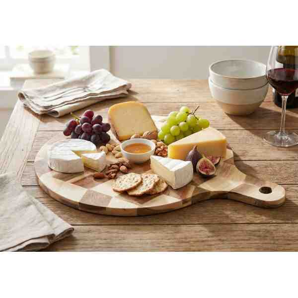 Tocator alimente cu tavita Kinghoff 38 cm, Tava mobila plastic, Bambus