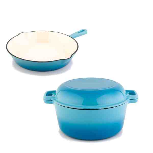 Set fontă emailată Senin – tigaie + oala cu capac multifuncțional