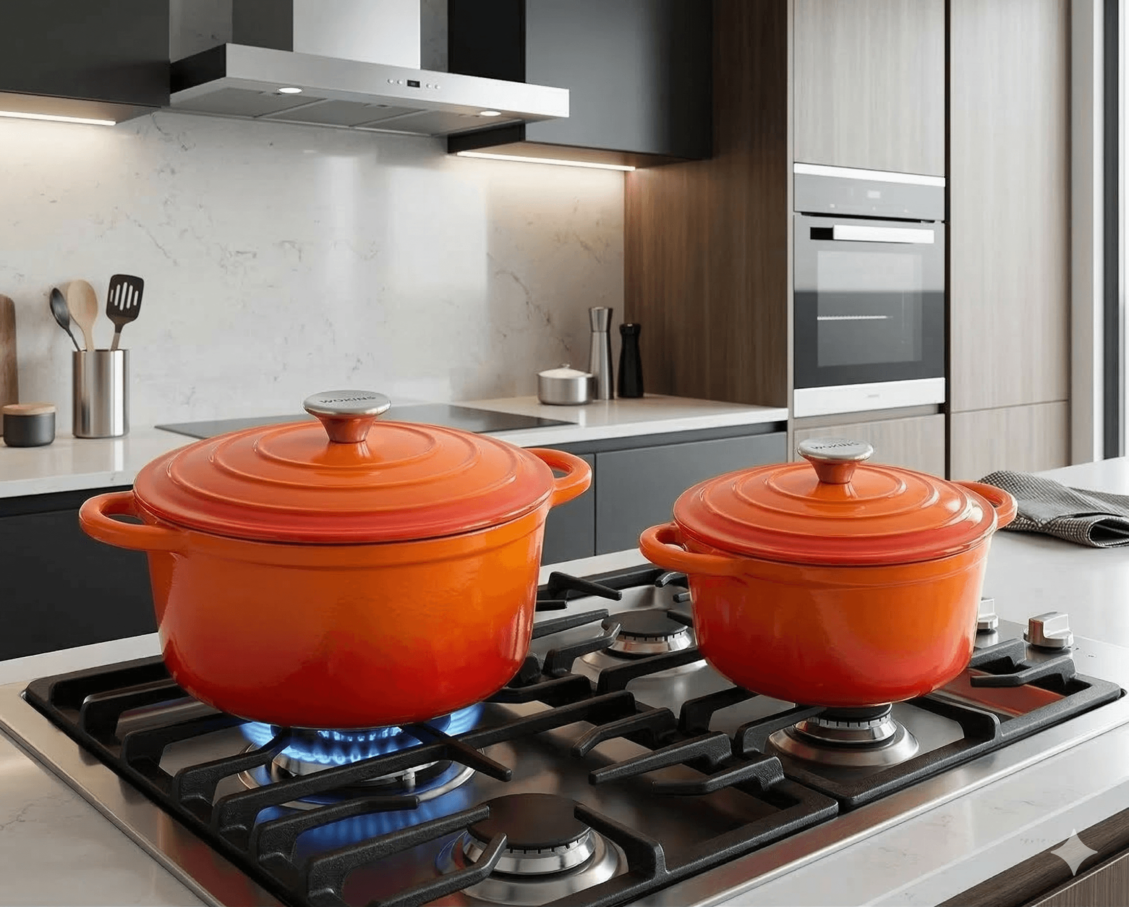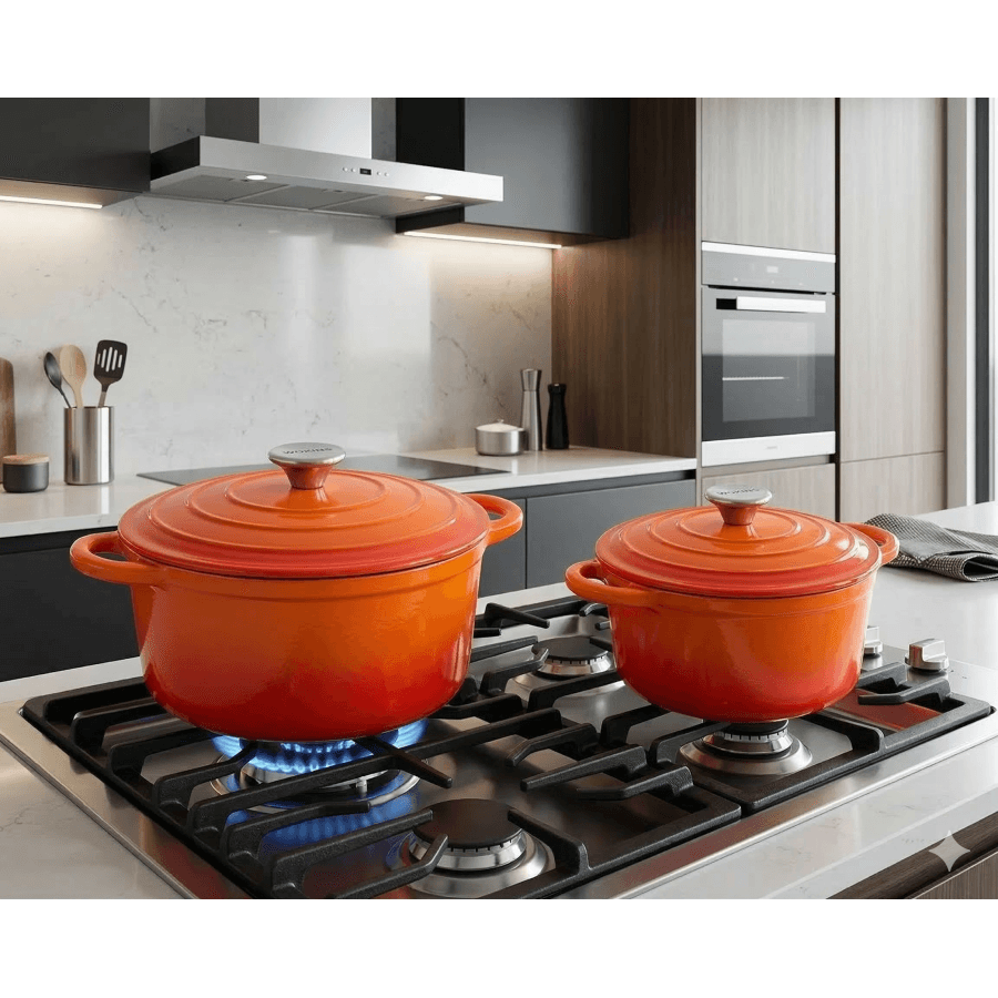 Acest set de oale din fontă este piesa de rezistență în orice bucătărie modernă.